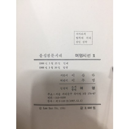 불심검문시대 (이산하시집,초판) > 현대시/시조