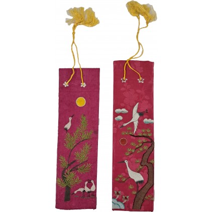 붉은색 명주에 십장생을 수놓았다.