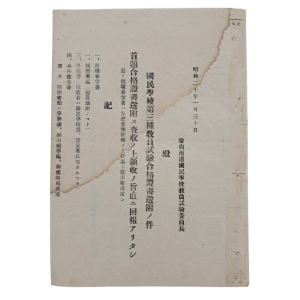 경남 국민학교제3종교원시험합격증서 송부에 관한 공문서 양식 > 고서(희귀본)