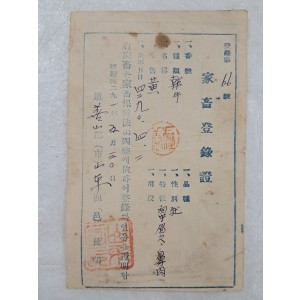 • 가축보호법(家畜保護法)의 의거해 경북 선산군(善山郡)에서 발급한 한우(韓牛) [가축등록증 家畜登錄證] (+0원)
