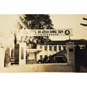 - 개교식 현수막이 있는 중앙교육행정연수원 정문과 건물 사진