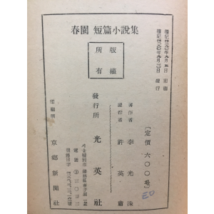 춘원 단편소설집 - 이광수 저