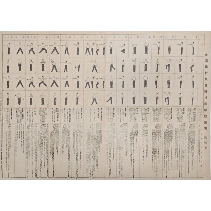 남만주철도주식회사의 만철사원회에서 발행한 16가지 체조 동작 그림과 운동목적·운동방법과 주의에 대한 설명이 실려 있는 희귀 자료이다.