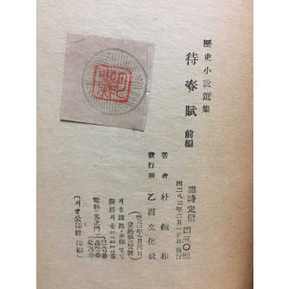 역사소설선집 대춘부 전편(歷史小說選集 待春賦 前編) > 고서(희귀본)