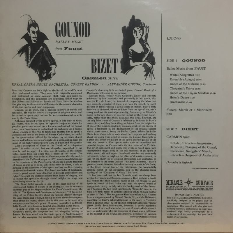 Gounod, Bizet, Royal Opera House Orchestra, Covent Garden, Alexander Gibson ‎– Faust Ballet Music / Carmen Suite > 건축/미술/음악