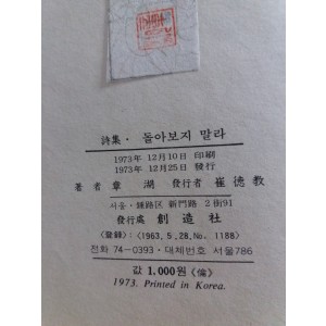 돌아보지 마라(장호시집,초판서명본)