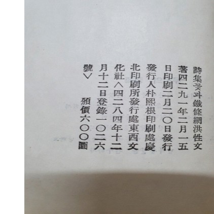 홍성문 시집 [꽃과 철조망] 1958 초판 요약정보 및 구매