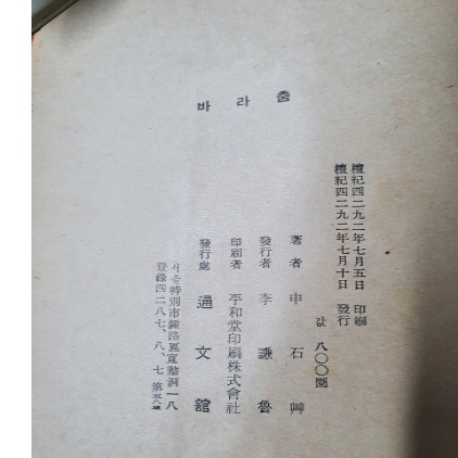 바라춤 (신석초 제2시집,1959년 초판,김환기 장정,천경자 속지화) 요약정보 및 구매
