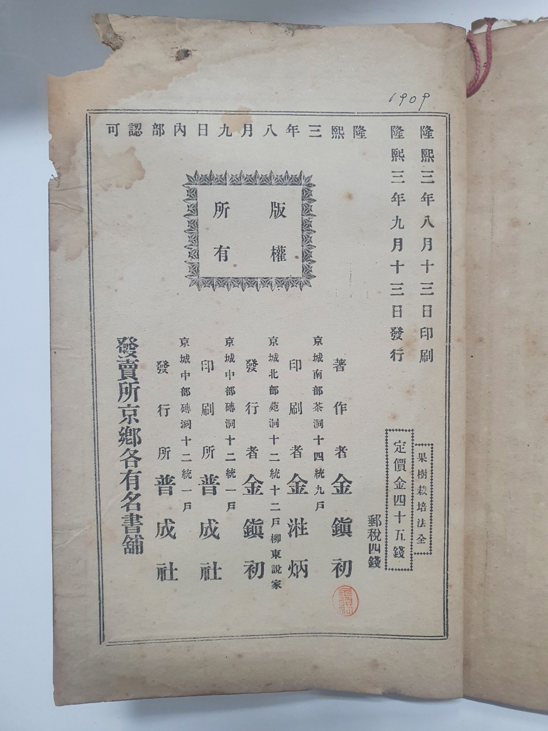 발행년도/판쇄 1909