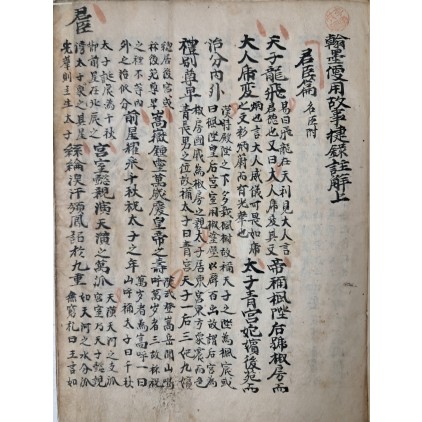 청나라 이정기(李廷機)가 짓고‚ 왕상(王相)이 전주(箋註) 증보하여 펴낸 아동용 교육서 [한묵편용고사첩록주해 翰墨便用故事捷錄註解]를 필사하였다. 붉은 색의 권점과 비점이 있다.