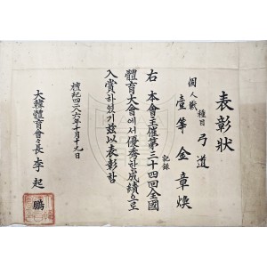 [31] 궁시장(弓矢匠) 백인 김장환(白寅 金章煥)의 궁도(弓道) 1등 표창장