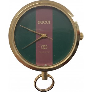 구찌의 상징적인 '셰리 라인(Sherry Line) 디자인이 적용된 펜던트형 시계이다. 초록색과 빨간색의 삼색선 배색이 특징이고 다이얼에 QUARTZ(쿼츠)라고 적혀 있어 배터리로 작동하는 방식임을 알 수 있다. 손목시계가 아닌 상단의 고리를 이용해 목걸이 체인 등에 걸어 사용하는 펜던트/회중시계 스타일로 80~90년대에 인기가 많았던 빈티지 모델이다.