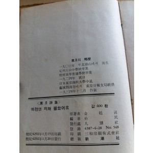 예전엔 미쳐 몰랐어요(김소월시집,성문각1959초판) > 고서(희귀본)