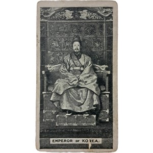 본 자료는 대한제국 제26대 황제 고종의 좌정 초상을 수록한 카드형 인쇄물로, 전면 하단에 “EMPEROR OF KOREA”라는 영문 표기가 확인된다. 후면에는 유럽 담배 브랜드 Muratti의 영문 광고 문구가 인쇄되어 있으며, 담배 품질을 강조하는 상업적 내용으로 구성되어 있다.