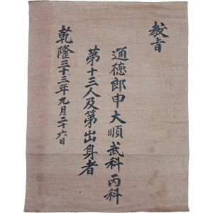 통덕랑(通德郞) 신대순(申大順) 무과(武科) 병과(丙科) 13인 급제출신자(及第出身者).