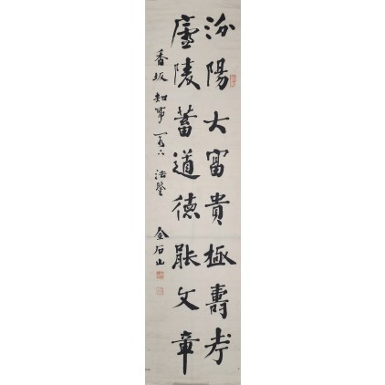 서울 서쪽 노고산(서강대 뒷산)의 공동묘지를 택지로 개발하면서 무연고 묘를 옮겨 장사지내고 1938년에 ‘京西老姑山遷骨聚葬碑)라는 비석을 세웠다. 아래의 직사각형 돌판에 새긴 비문 후단에 ‘수양산인(首陽山人)(해주 오씨를 말한다) 오세창 예(隸)'라 하여 위의 제자를 위창이 예서로 썼고, '부춘산인(富春山人)(경주 김씨) 김흡(金洽) 근서(謹書)'라 하여 비문은 김흡이 썼다고 새겼다. 석산 김흡은 함북 부령군 출신의 한학자이며 서예가이다.