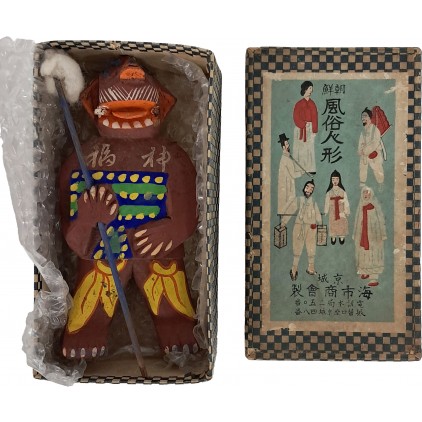 일제강점기 경성에 있던 해시상회에서 판매했던 목각인형 방상씨(方相氏 로 보존상태 매우 양호하며, 당시의 케이스에 보존되어 있다.