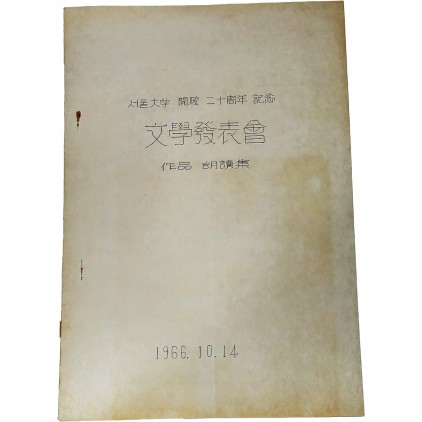서울대학 개교 20주년 기념 문학 발표회 작품 낭독집 > 연극/영화/기념행사자료
