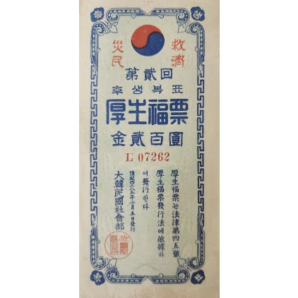 대한민국 사회부에서 이재민 구제자금 조달을 위해 복권 형태로 발행했다.
