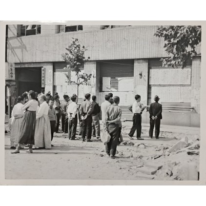 [46] 한국전쟁 중 ‘서울수복’ 직후 연합신문사 ‘전황 게시판’ 앞 군중들 사진 > 제30회 유튜브 실시간 경매