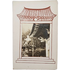 이 카드는 1950∼60년대에 제작된 대형 성탄 인사 카드로, 앞면에 실제 흑백 사진이 직접 부착된 형태이다. 카드의 인쇄 도안은 전통 한옥의 기와지붕과 기둥을 간결한 붉은 선으로 표현해, 한국적인 건축미를 강조하였다. 사진 속에는 사찰로 보이는 건물의 처마와 단청, 불상으로 추정되는 인물이 함께 담겨 있다. 한국의 전통 건축미와 종교 공간을 배경으로 사용한 이색적인 구성이다. 내면에는 손 글씨로 “Season’s Greetings from the Land of the Morning Calm” 문구가 적혀 있으며, 붉은 태양과 십자가를 함께 그려 넣었다. 모든 요소가 수공으로 제작되어, 인쇄형 카드보다 개인적 표현이 강한 반수제(半手製) 작품이다. 붉은색과 녹색의 채색 조화는 성탄의 상징색을 따르면서도 따뜻한 분위기를 자아낸다. 한국적 미감과 종교적 상징이 결합된, 당시 생활 문화와 미술 감각을 엿볼 수 있는 귀중한 자료이다.