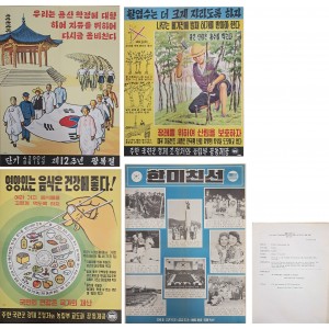 ‘광복 12주년 기념 국가 정체성 포스터’, ‘국민 영양·식생활 개선 보건 포스터’, ‘산림 보호·치수·홍수 방지 농림 포스터’, ‘한미 친선 및 군·민 협조 질서를 시각화한 대형 포스터’로 구성되어 있으며, 전후 대한민국 사회의 국가정체성 확립, 국민건강증진, 국토복구, 한미 협력체계를 국민에게 전달하기 위해 제작된 공식 시각 계몽자료이다.