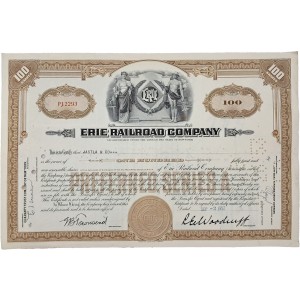 본 자료는 1952년 9월 2일 발행된 미국 이리(Erie) 철도회사 5% 우선주 100주 주권 원본으로, 한국전쟁이 진행되던 시기에 실제 금융자산으로 운용된 주권이다.