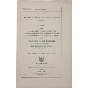 이 보고서는 1955년 1월 21일 미국 워싱턴의 정부 인쇄국(United States Government Printing Office)에서 발행된 제84차 의회 제1회기 상원 사법위원회 산하 내부보안소위원회의 공식 청문회 보고서다. 보고서에는 마크 클라크(Mark Clark), 제임스 밴 플리트(James A. Van Fleet), 에드워드 알몬드(Edward M. Almond) 등 한국전쟁의 향방을 결정했던 미군 핵심 지휘관들의 생생한 증언이 25페이지에 걸쳐 상세히 수록되어 있다.