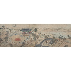 화려한 단청이 된 정자(누각) 안에는 갓을 쓴 선비나 지역 유지들이 앉아 연회를 즐기며 아래의 놀이를 관람하고 있다. 대보름이 신분을 넘어 온 마을 사람이 즐겼던 명절임을 보여준다.