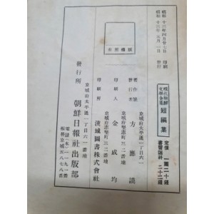 현대조선문학전집 [단편집] 중권 1938 > 고서(희귀본)