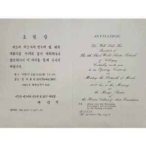 • 제5차 제3세계 연극제 및 회의 개회식 초청장 (+0원)