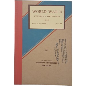 본 자료는 1947년 6월 [National Geographic Magazine]에 수록된 “With the U.S. Army in Korea” 기사를 별도로 제본한 것으로, 해방 직후 미군정 시기 한국 상황을 직접적으로 담고 있다. 저자는 당시 주한 미군정 사령관이었던 존 R. 하지(John R. Hodge)로, 본문에는 38선 분단, 행정통치, 경제상황, 사회변화 등 점령기 한국의 현실이 미군 시각에서 상세히 기록되어 있다.