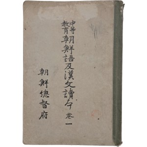 1933년 조선총독부가 발행한 [중등교육 조선어 및 한문독본(권1)]은 일제강점기 중등교육의 언어규범과 가치관을 담은 관제 교과서이다. 총 182쪽 분량으로, '조선어 부분'와 '한문 부분'로 나뉘어 체계적인 교육을 시도하고 있다.