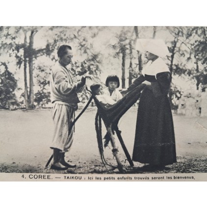 한국 고아(孤兒)(Coree Taikou : lci les petits enfants trouves seront les bienvenus, 여기서는 버려진 아이들이 환영받을 것입니다) 관련엽서이다.