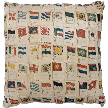 본 자료는 20세기 초 담배 회사에서 수집용으로 배포하던 세계 각국 국기 그림 실크(cigarette silks)를 여러 장 모아 꿰매어 만든 쿠션 형태의 직물자료이다.