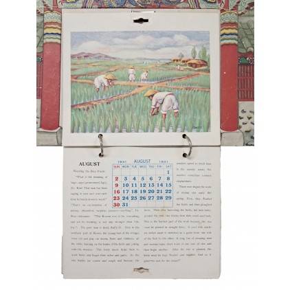단청을 넣은 한옥 건물은 평면이 아니고 울퉁불퉁 입체적인 모양을 이루고 있다. 달력은 12월이 모두 온전하며, 대부분 농촌의 목가적인 모습을 그렸다.