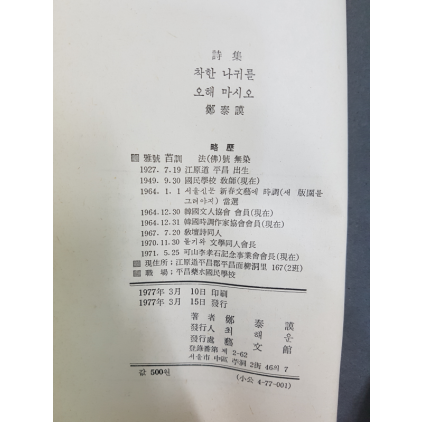 * 표지 안쪽에 저자 증정인이 찍혀 있습니다.