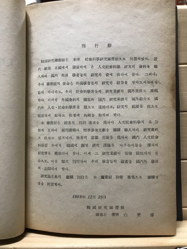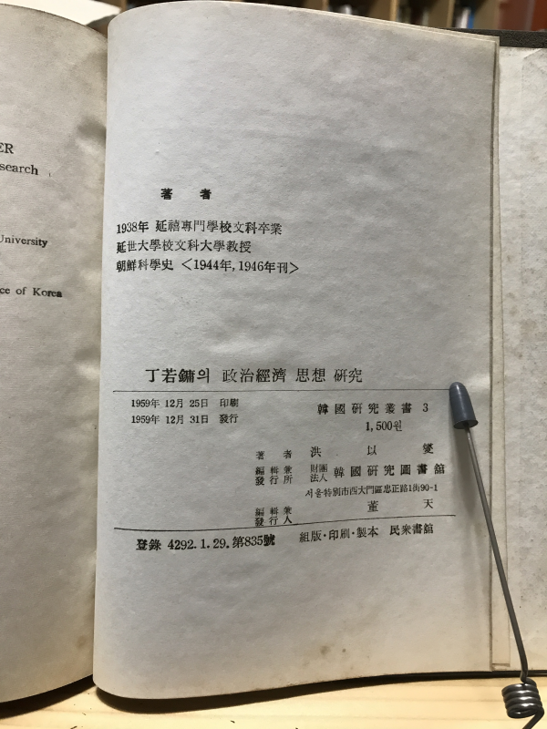 * 1959년 발행. 연구서를 하드커버로 장정한 책.