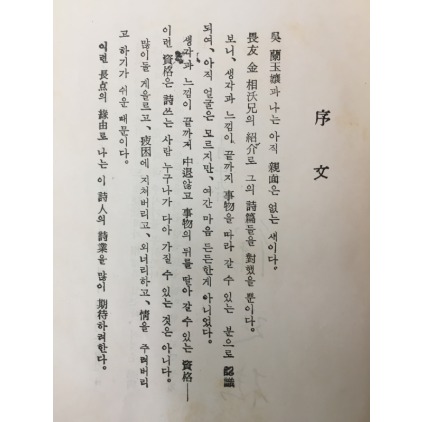 오란옥의 제1시집. 미당 서정주의 서문. 책등 깨끗함. 표지와 서문에 얼룩 있지만 내지 상태 양호함.