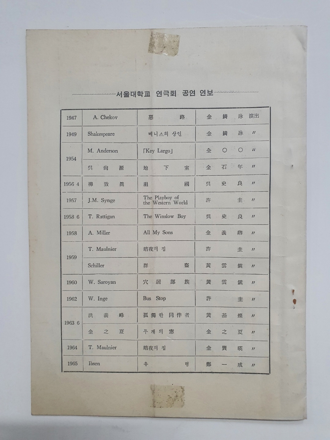 서울대 개교 20주년 기념공연 [산돼지] 팸플릿, 1966 서울대 개교 20주년 기념공연 [산돼지] 팸플릿, 1966 서울대 개교 20주년 기념공연 [산돼지] 팸플릿, 1966